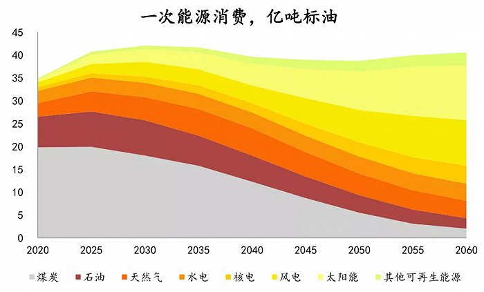 从各类能源的占比来看,非化石能源2030年占一次能源比重增至26%左右,2060年增至80%;